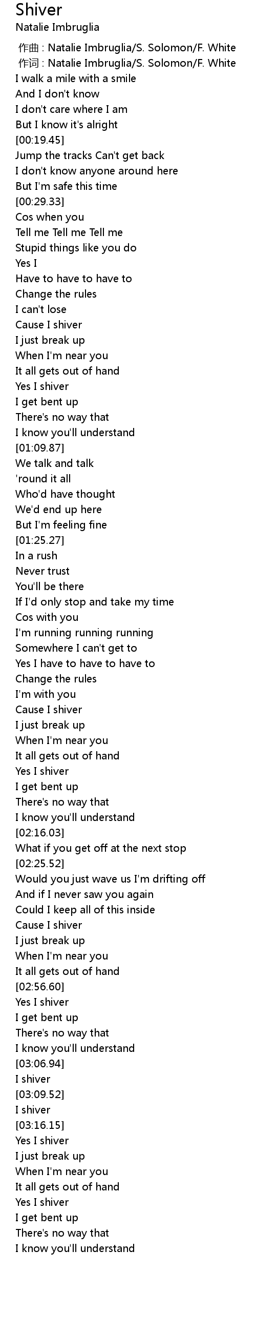 | [00:01.00] | 作词 : Natalie Imbruglia/S. Solomon/F. White |