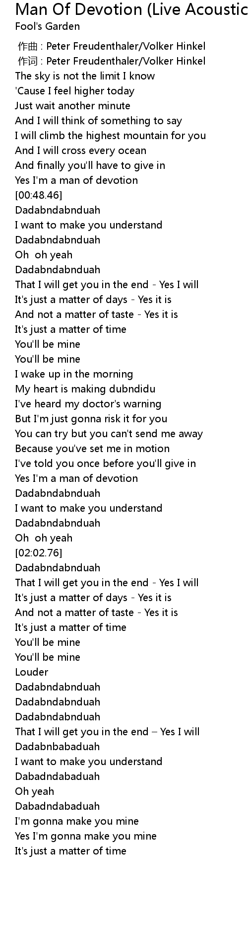 | [00:59.91] | That I will get you in the end - Yes I will |