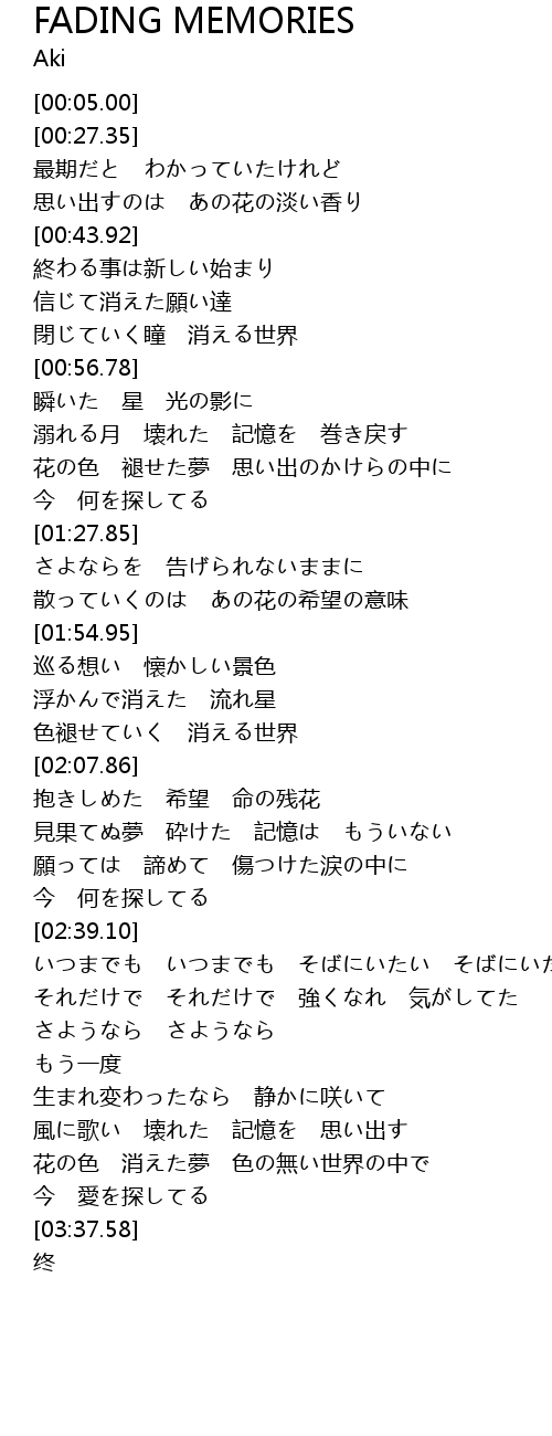 | [00:37.07] | 思い出すのは あの花の淡い香り |