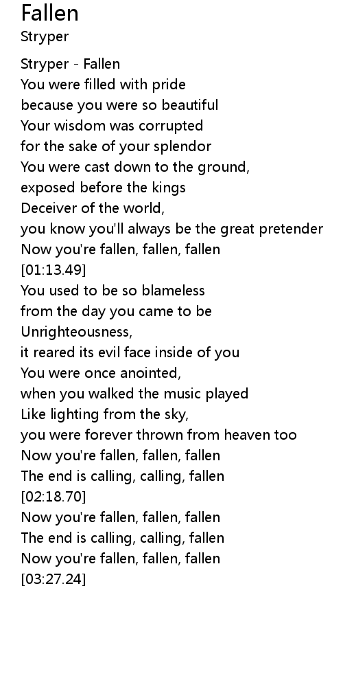 | [02:44.71] | Now you're fallen, fallen, fallen |
