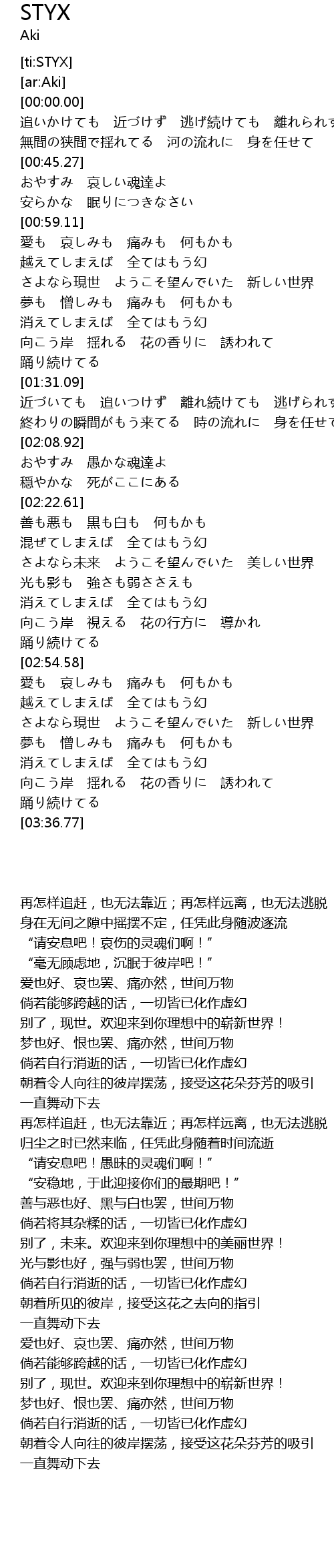| [00:38.58] | 無間の狭間で揺れてる 河の流れに 身を任せて |