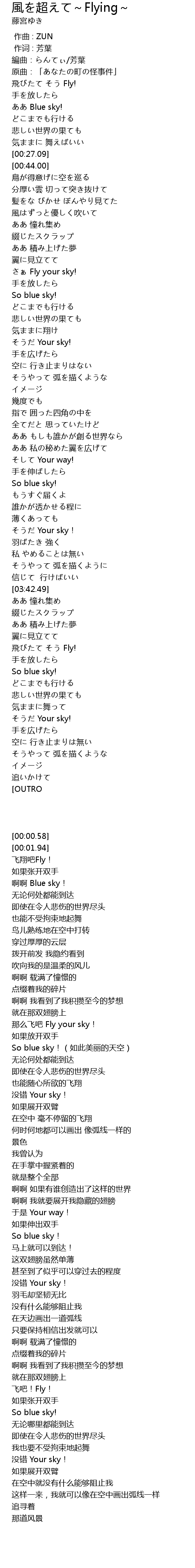 | [01:37.59] | Fly your sky! |