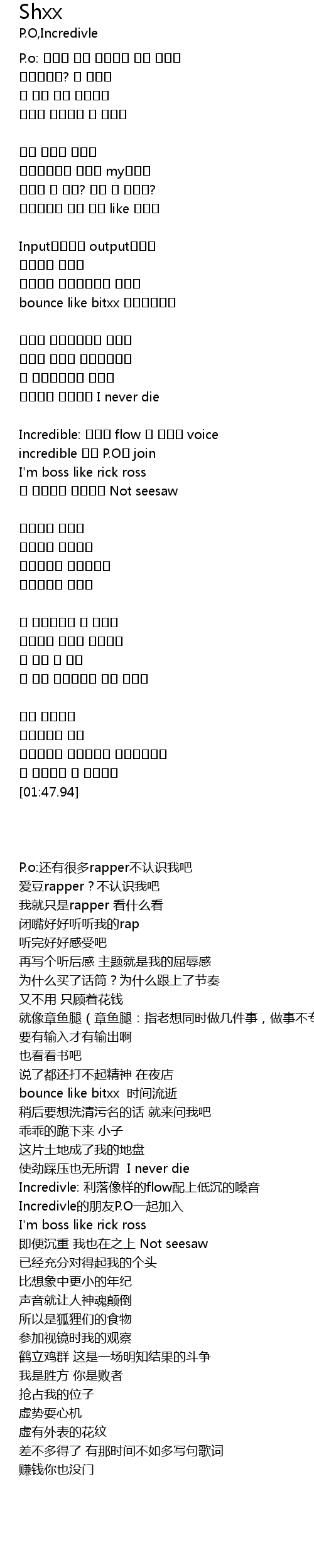 | [00:03.03] | P.o: 아직도 많은 랩퍼들은 나를 물로봐 |