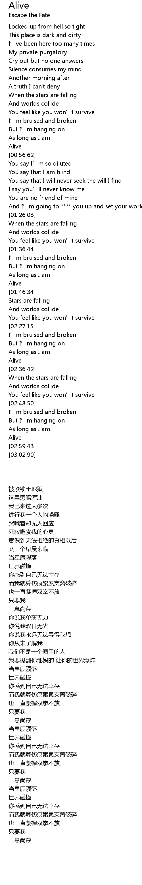 | [02:57.79] | Alive |