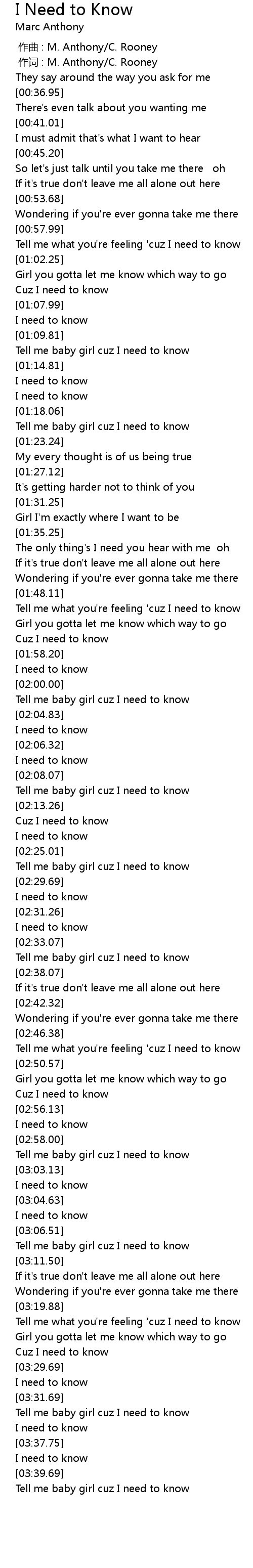 | [03:32.94] | Tell me baby girl cuz I need to know |
