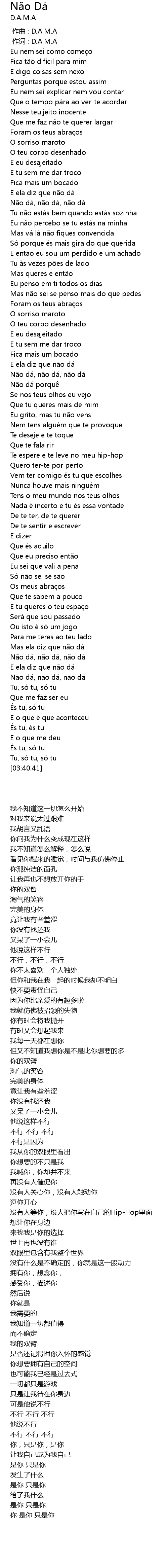 | [02:50.38] | Não dá, não dá, não dá |