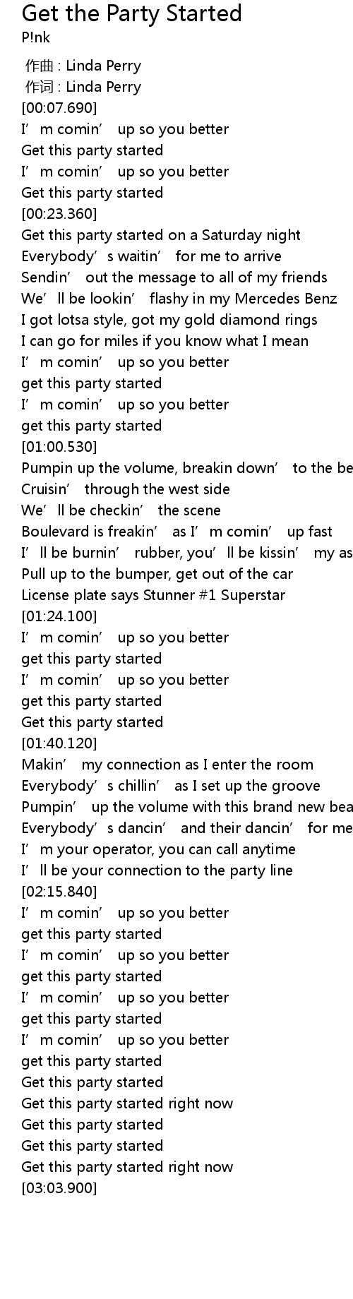 | [03:00.200] | Get this party started right now |