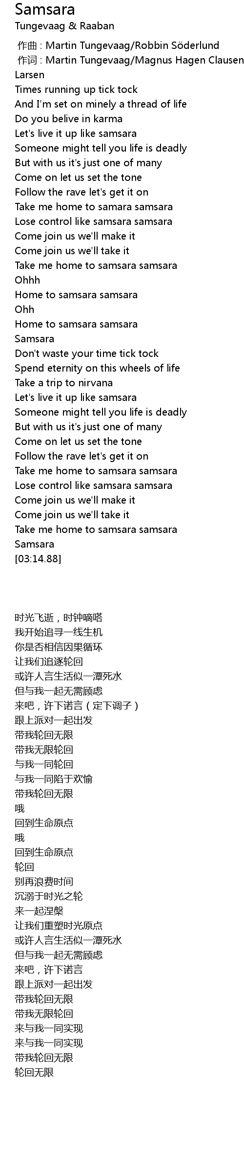 | [00:15.25] | Let's live it up like samsara |