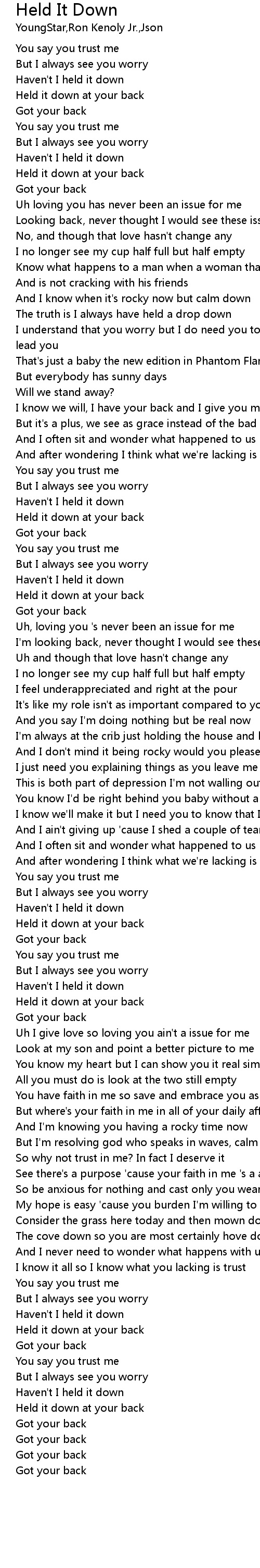 Haven't I held it down |