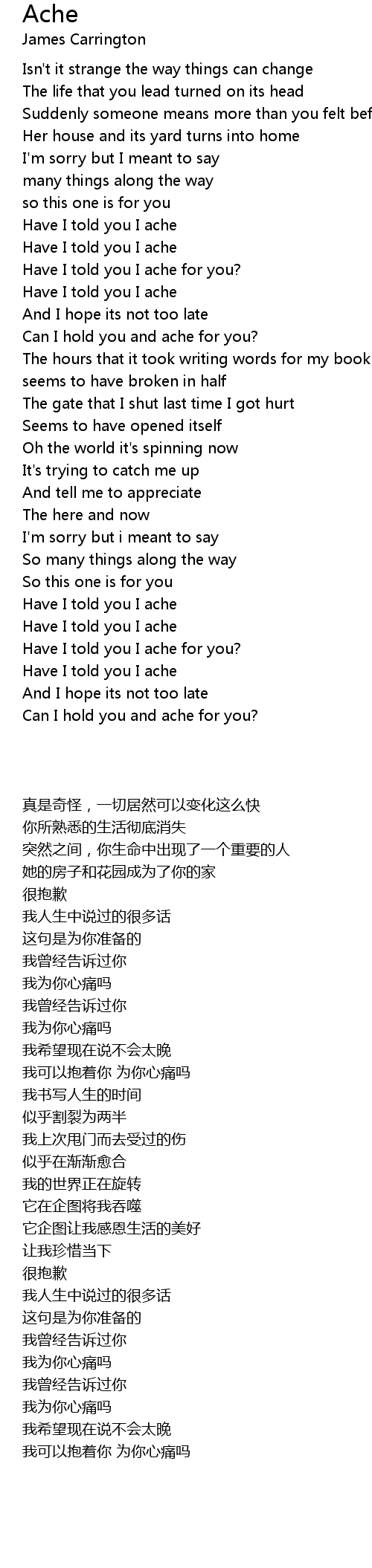 Have I told you I ache |