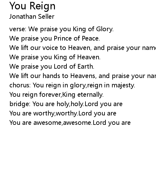| chorus: You reign in glory,reign in majesty. | |