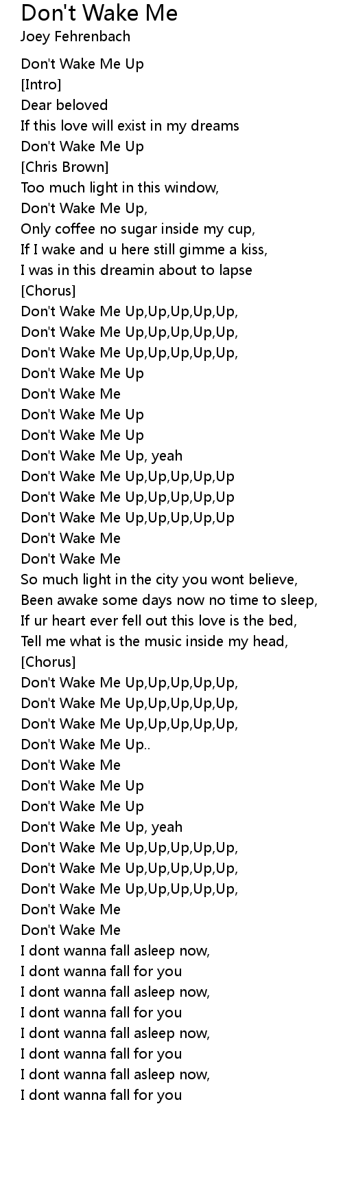 Don't Wake Me Up,Up,Up,Up,Up |