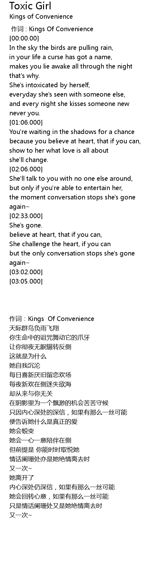 | [00:00.00] | 作词 : Kings Of Convenience |
