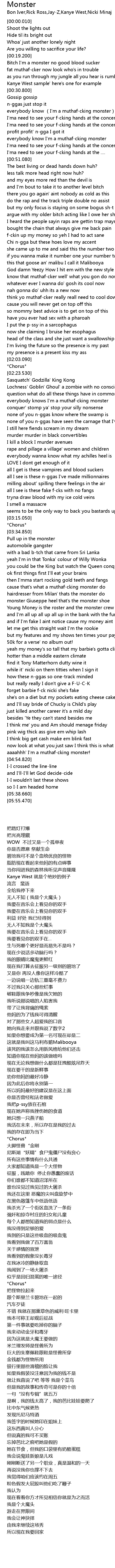 | [00:33.500] | everybody know I' m a muthafcking monster |