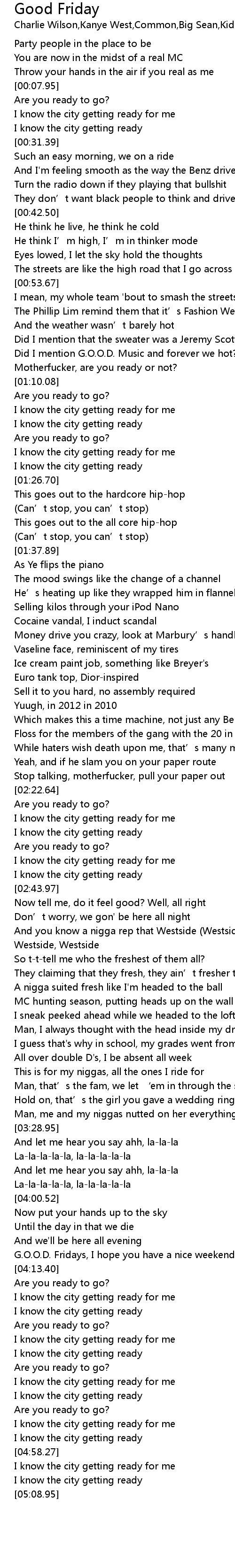| [04:10.99] | G.O.O.D. Fridays, I hope you have a nice weekend |