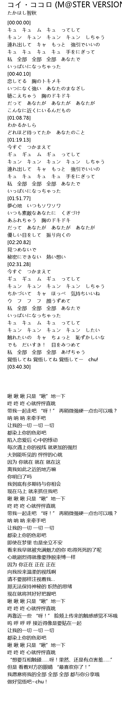 | [00:47.80] | 恋してる 胸のトキメキ |