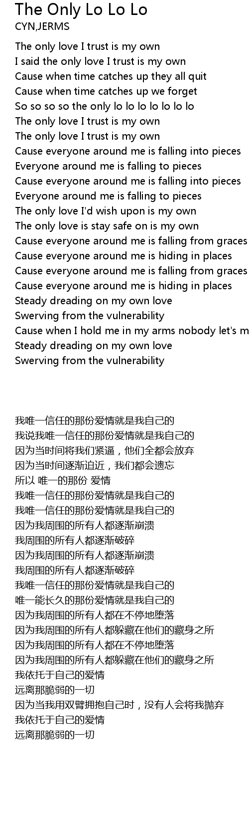 | [00:36.44] | I said the only love I trust is my own |