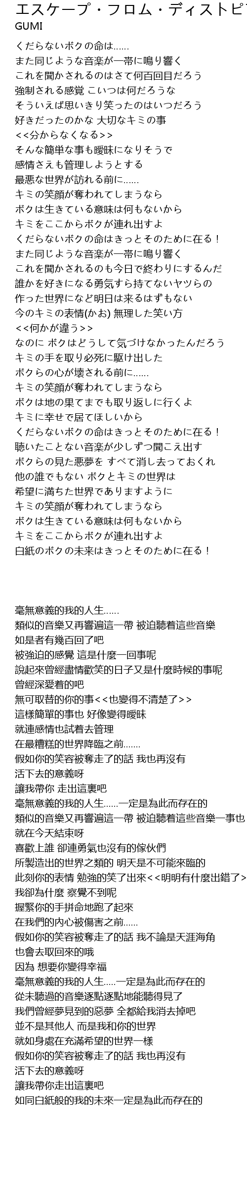 | Song | エスケープ・フロム・ディストピア |