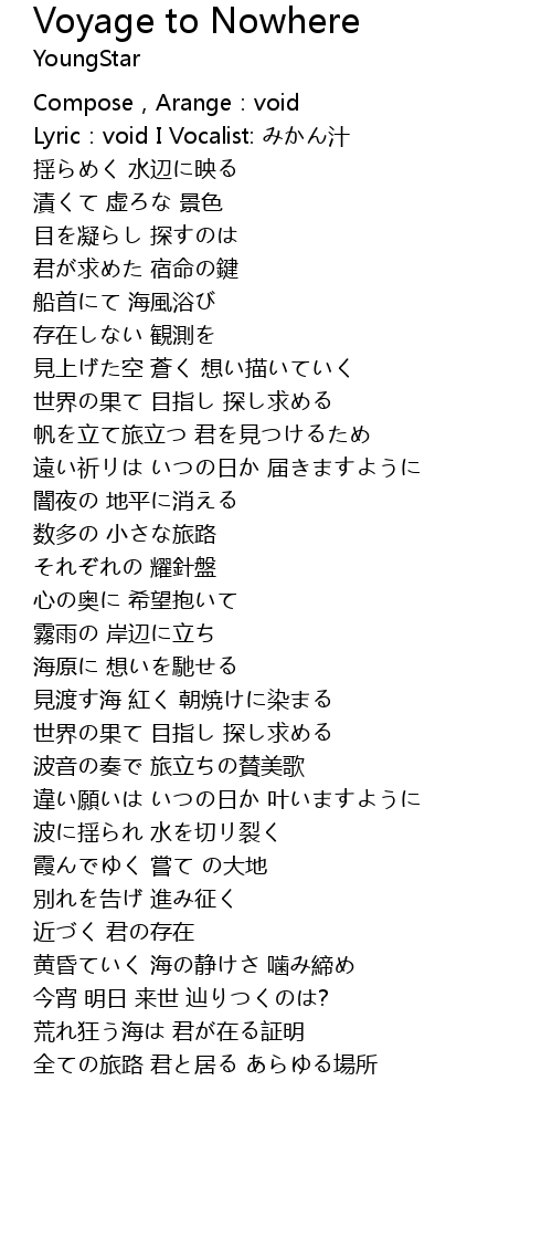 | [00:08.44] | Lyric:void I Vocalist: みかん汁 |