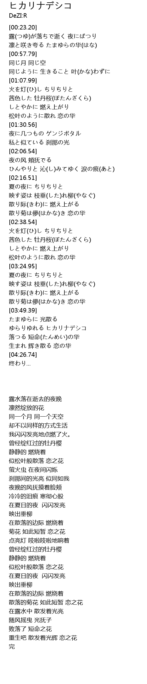 生まれ 辉き散る 恋の华 |
