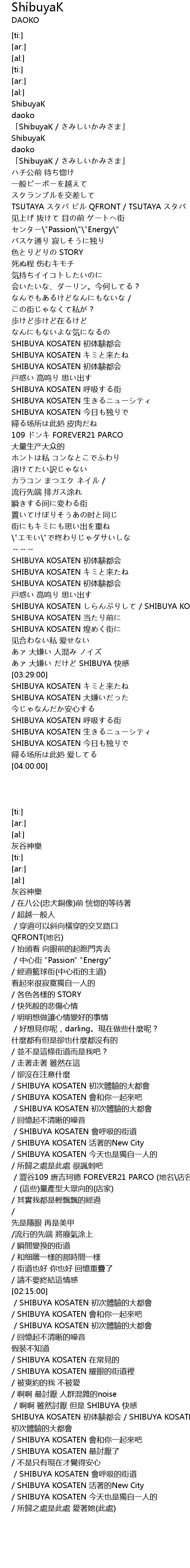 | [01:36.50] | SHIBUYA KOSATEN jin ri du |