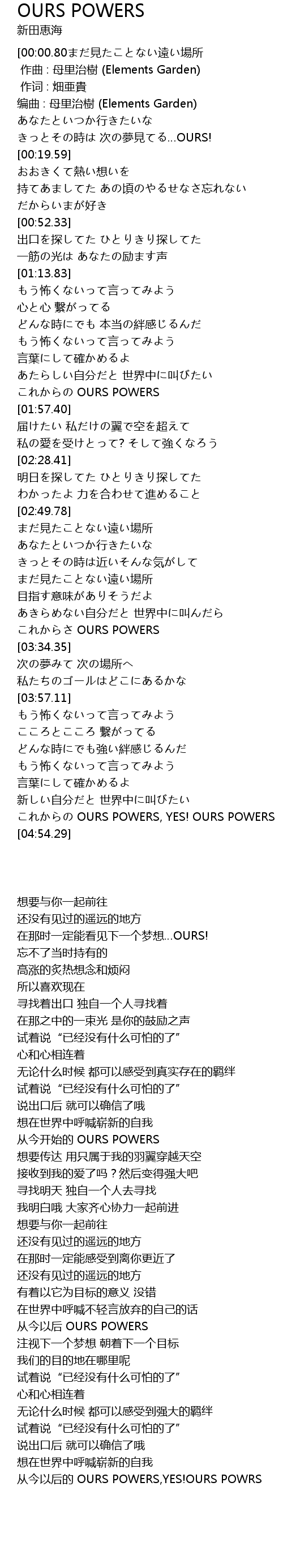 | [04:35.17] | これからの OURS POWERS, YES! OURS POWERS |