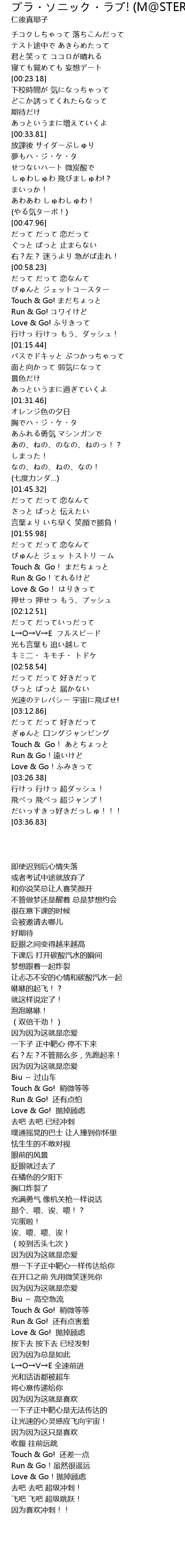 | Song | プラ・ソニック・ラブ! (M@STER VERSION) |