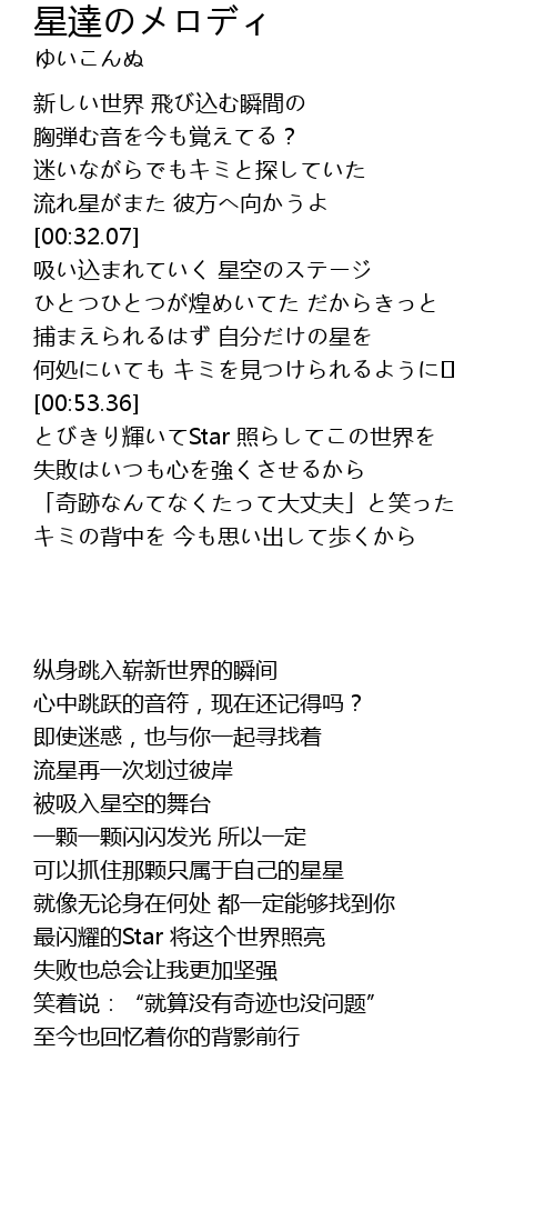 | [00:32.27] | 吸い込まれていく 星空のステージ |