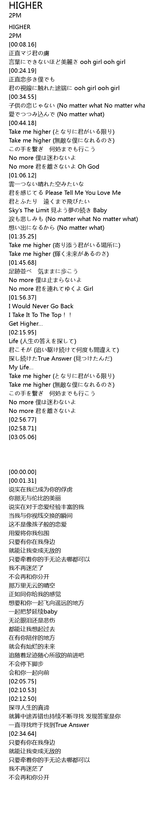 | [01:35.75] | Take me higher (寄り添う君がいる場所に) |