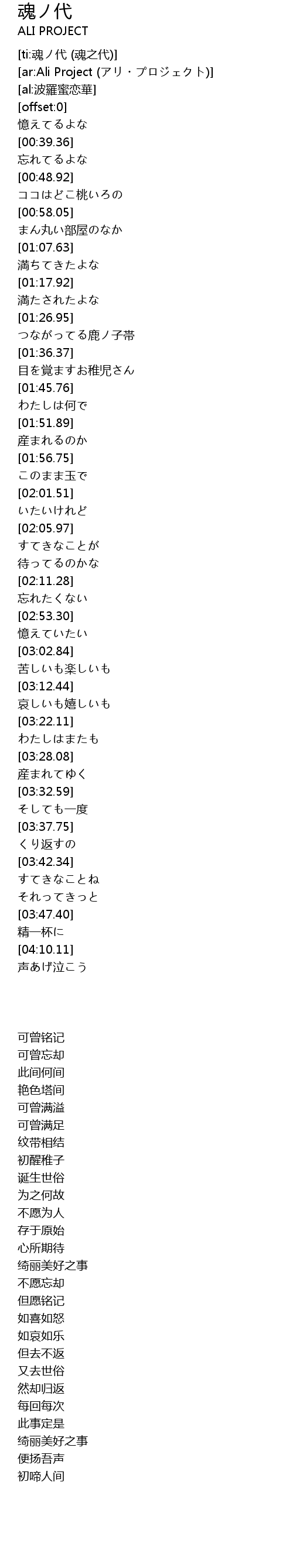 | [ti:魂ノ代 (魂之代)] | |