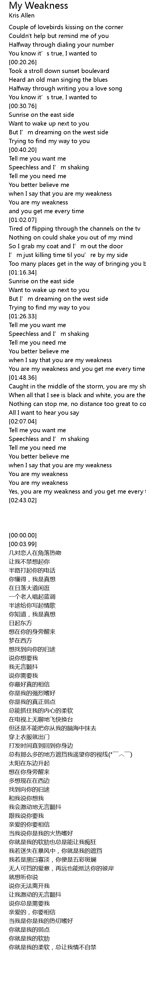 | [01:41.56] | You are my weakness and you get me every time |