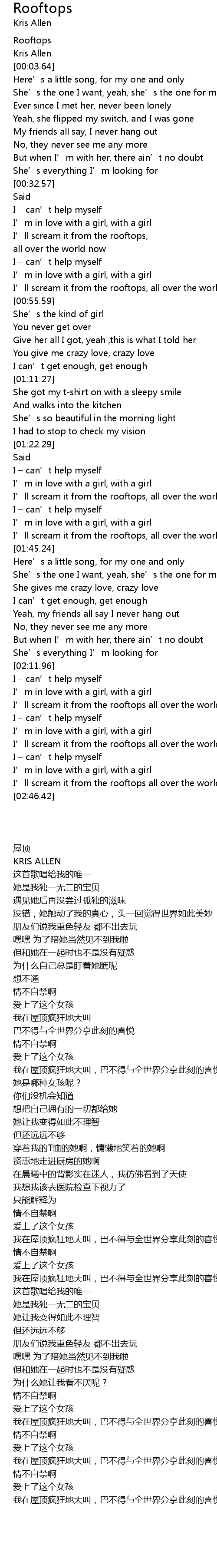 | [00:01.08] | Rooftops |