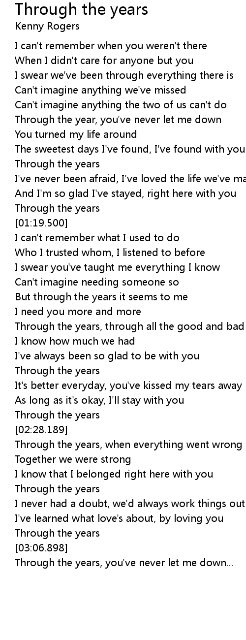 | [02:42.998] | Through the years |