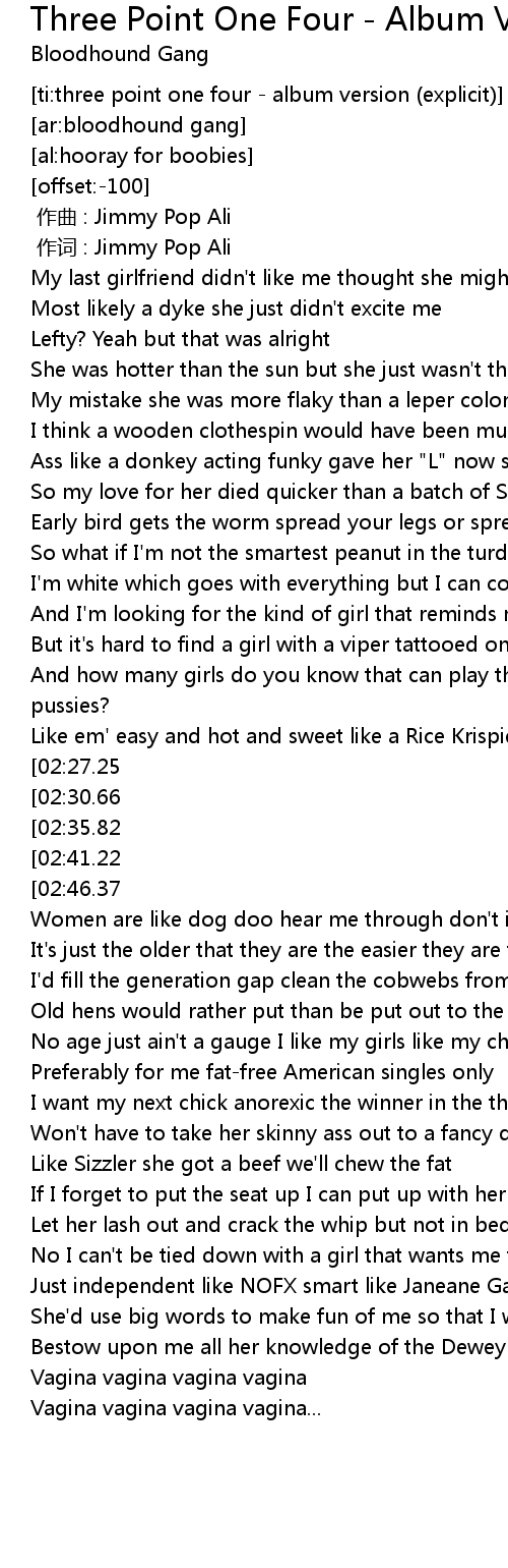 | [03:24.00] | Vagina vagina vagina vagina... |