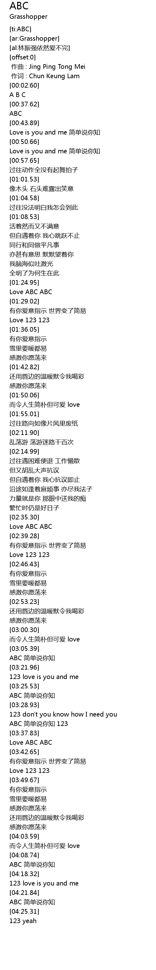 | [03:33.34] | ABC jian dan shuo ni zhi 123 |