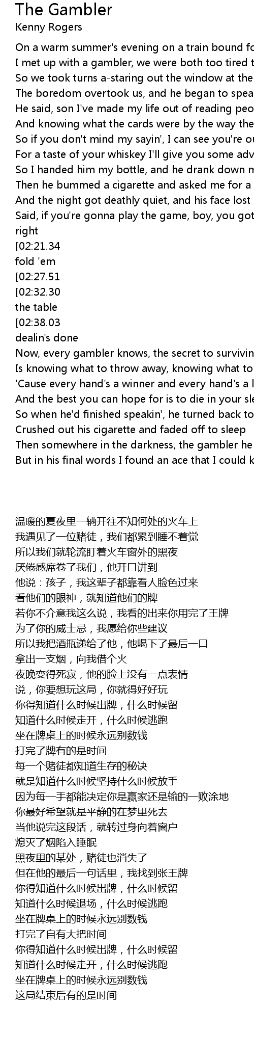 I met up with a gambler, we were both too tired to sleep |