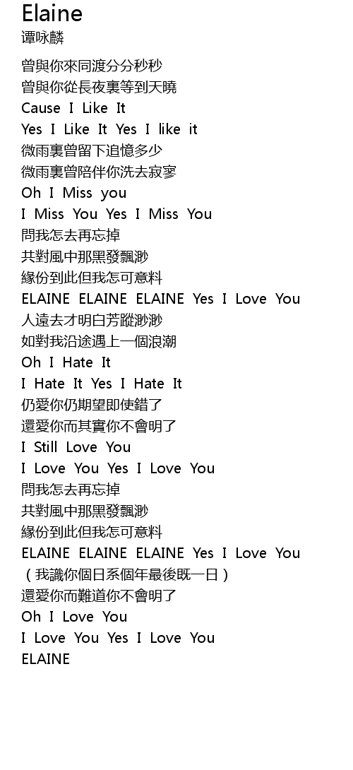 | [02:54.19] | ELAINE ELAINE ELAINE Yes I Love You |