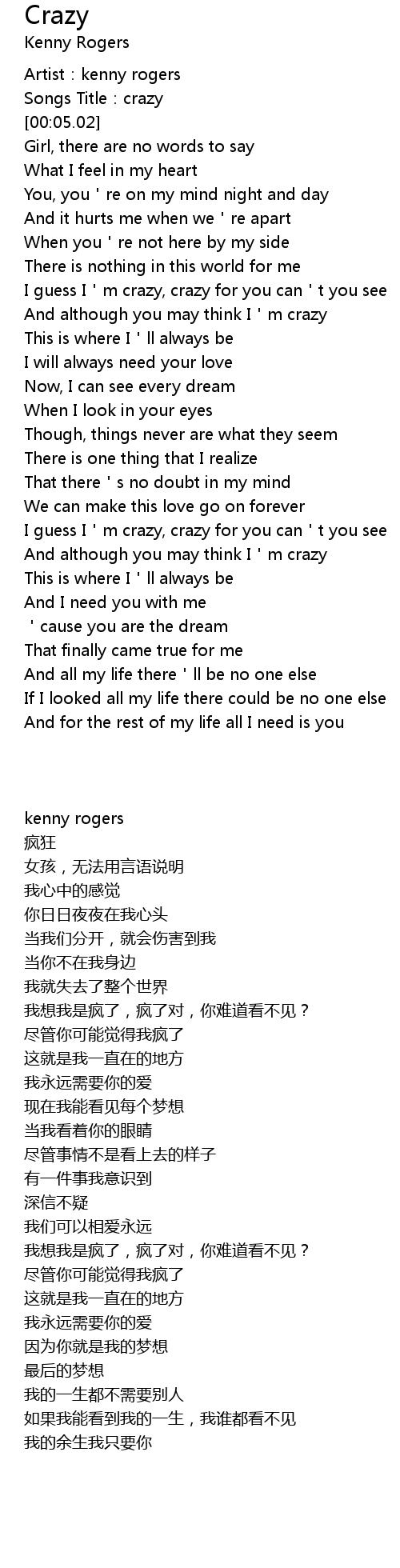 | [00:03.27] | Songs Title:crazy |