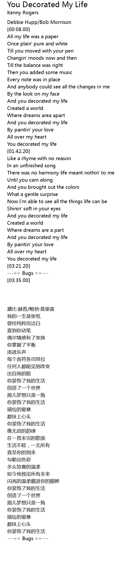 And you decorated my life |