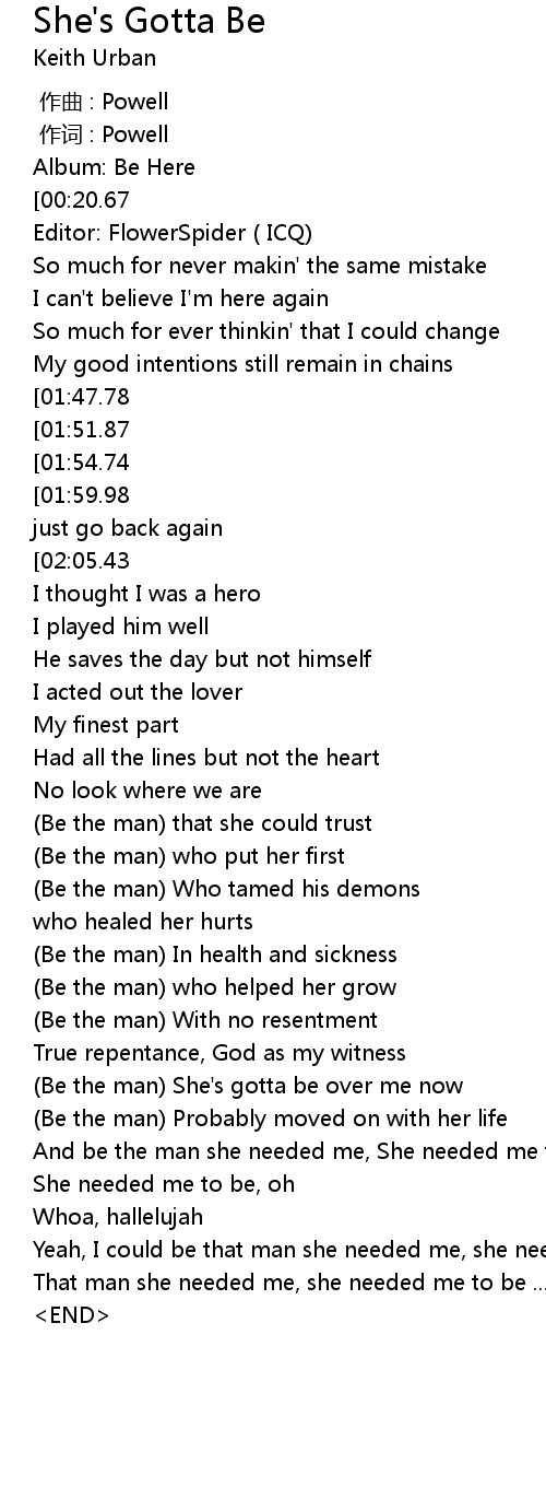 | [04:22.17] | That man she needed me, she needed me to be ... |