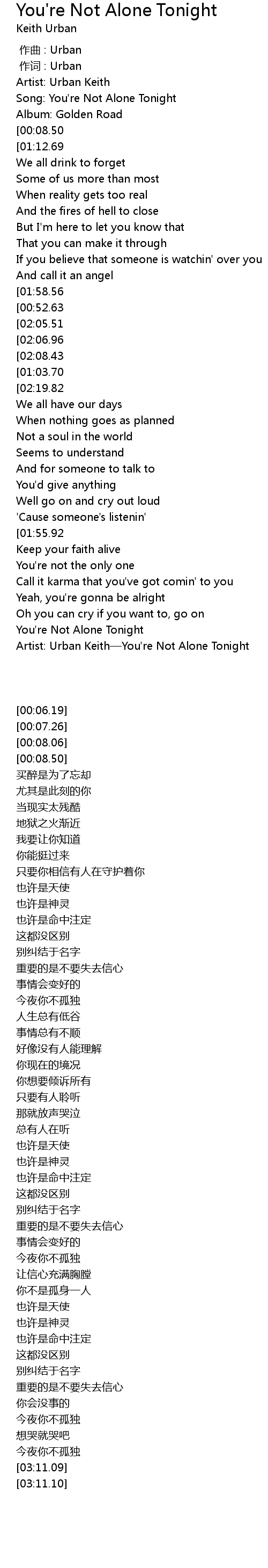 | [03:11.09] | Artist: Urban Keith You' re Not Alone Tonight |