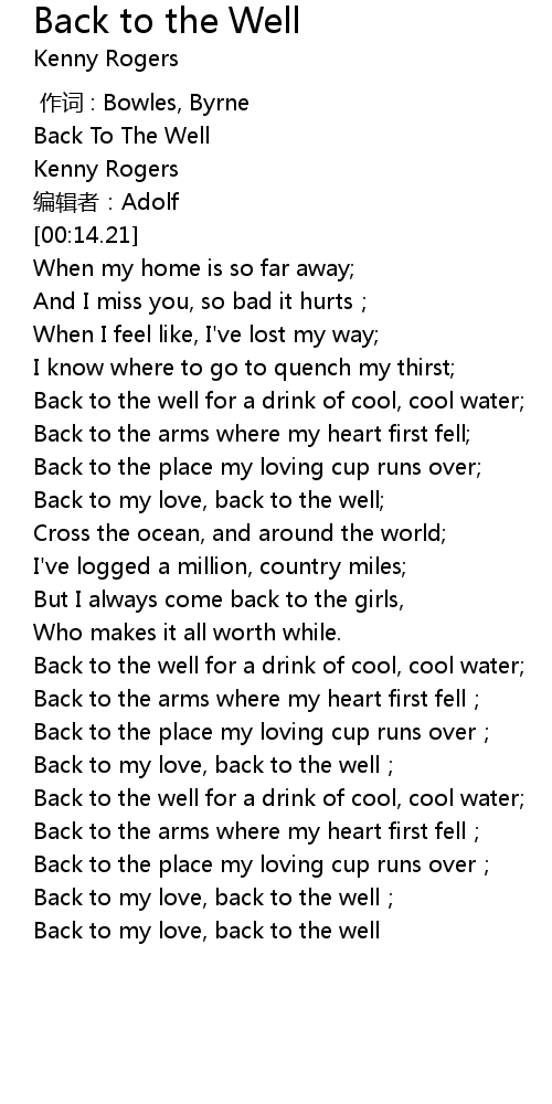 | [02:44.42] | Back to my love, back to the well |