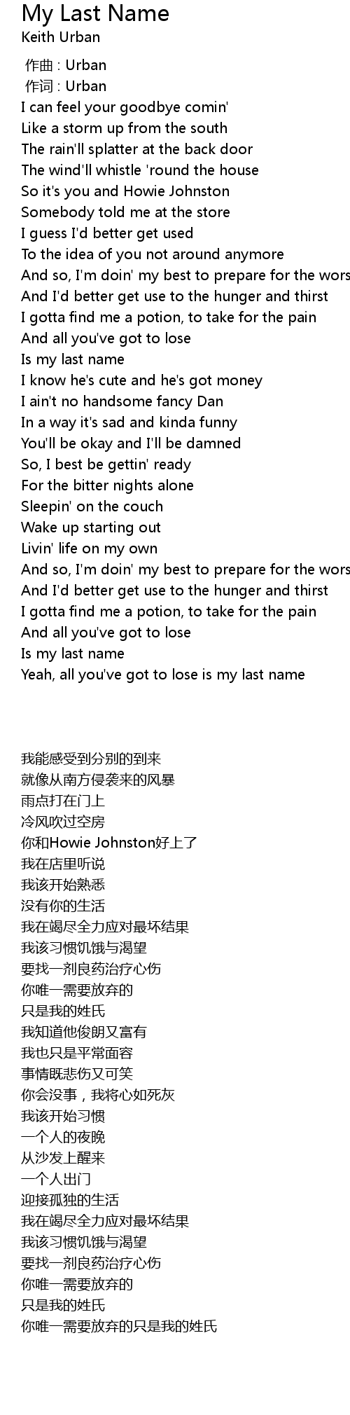 | [02:42.44] | Yeah, all you' ve got to lose is my last name |