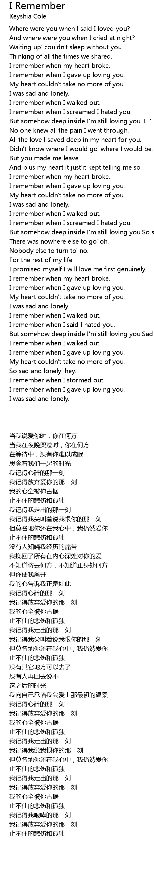 | [01:22.640] | But somehow deep inside I' m still loving you. I m sad and lonely. |