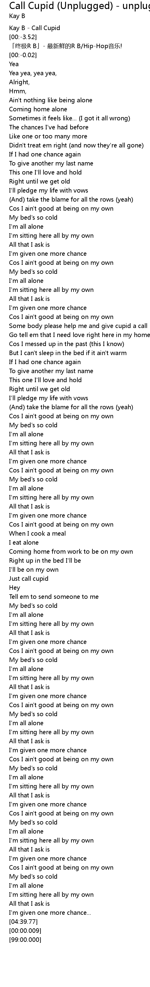 | [00:-7.52] | Kay B - Call Cupid |