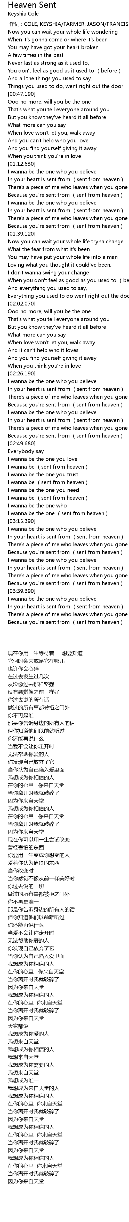 | [00:00.00] | zuò cí : COLE, KEYSHIA FARMER, JASON FRANCIS, ALEX |