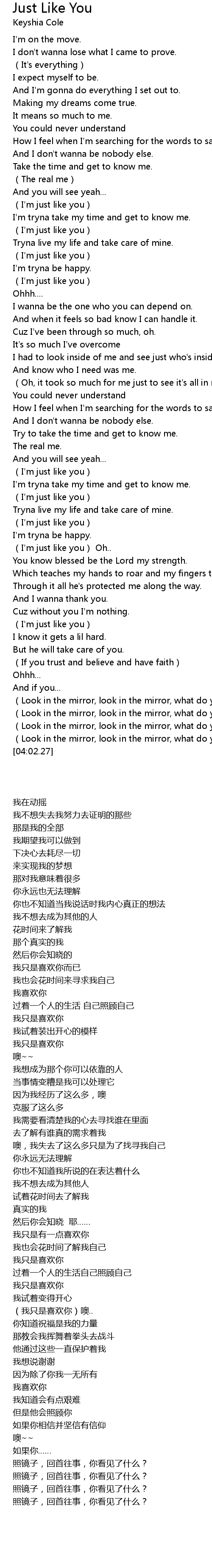 | [03:52.62] | (Look in the mirror, look in the mirror, what do you see?) |