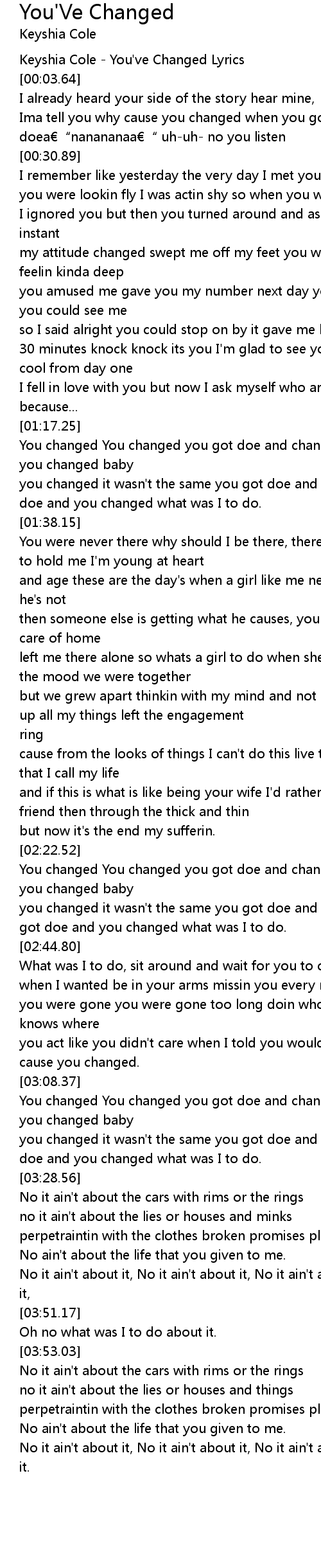 | [00:00.79] | Keyshia Cole - You've Changed Lyrics |