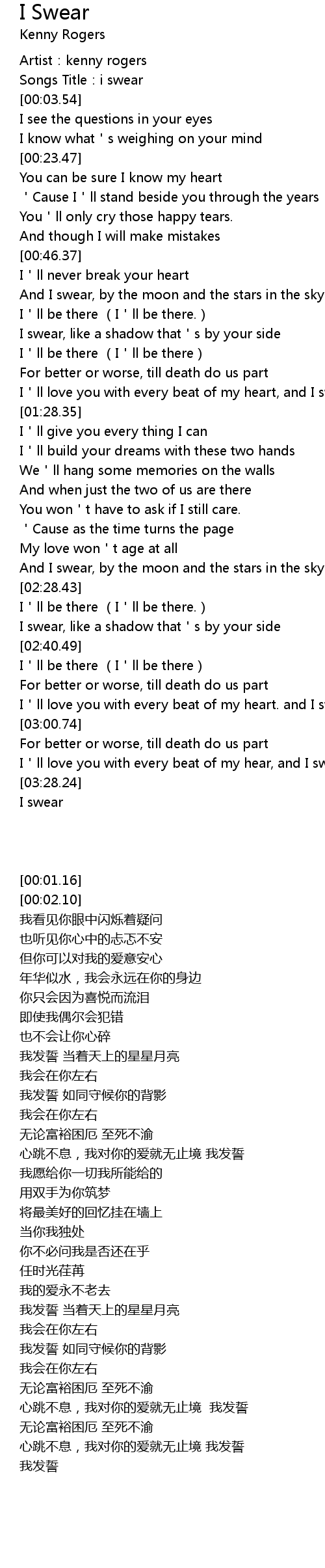 | [01:22.21] | I ll love you with every beat of my heart, and I swear. |