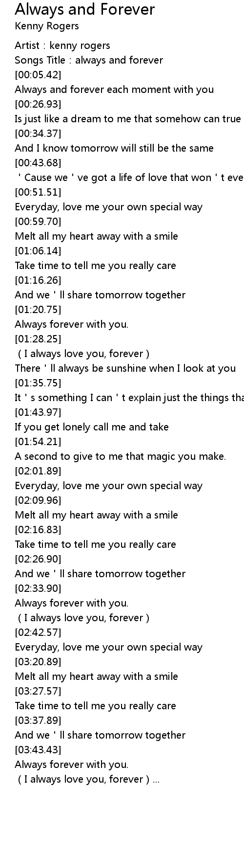 | [00:03.74] | Songs Title:always and forever |